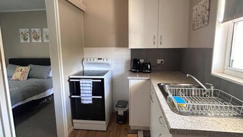 Fully self contained studio apartment. -Private modern, as new kitchen with an oven and refrigerator/freezer -Private bathroom with clean towels available-Queen bed with...
